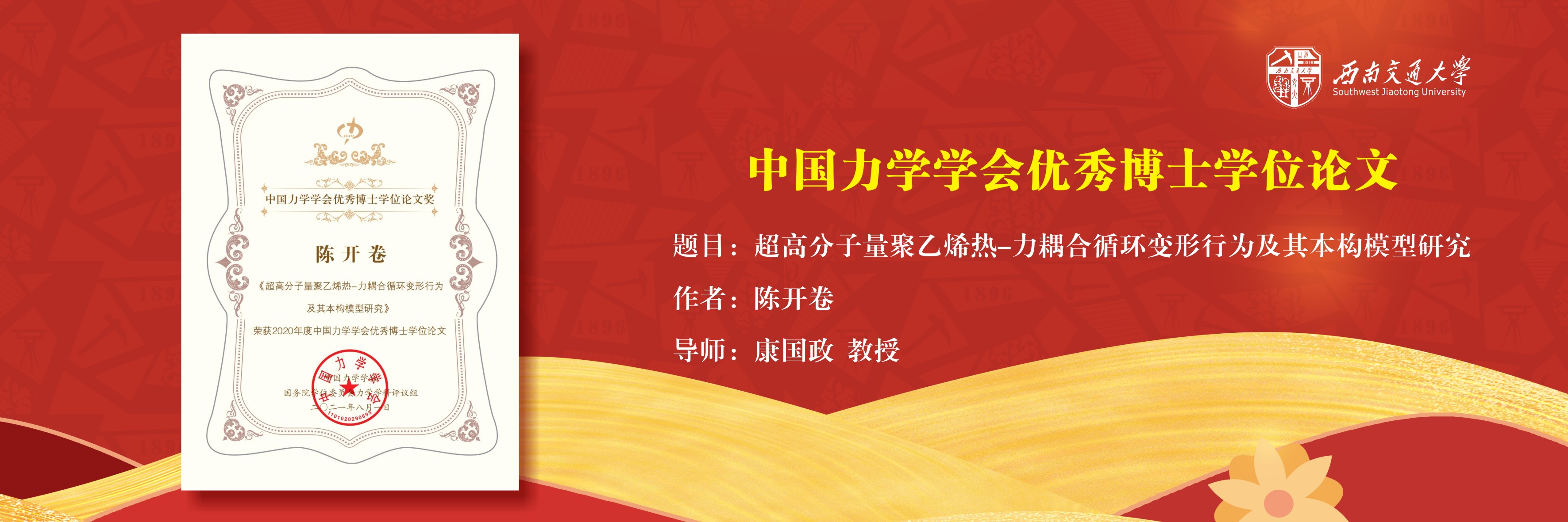 力学学院1篇博士学位论文入选中国力学学会优秀博士学位论文