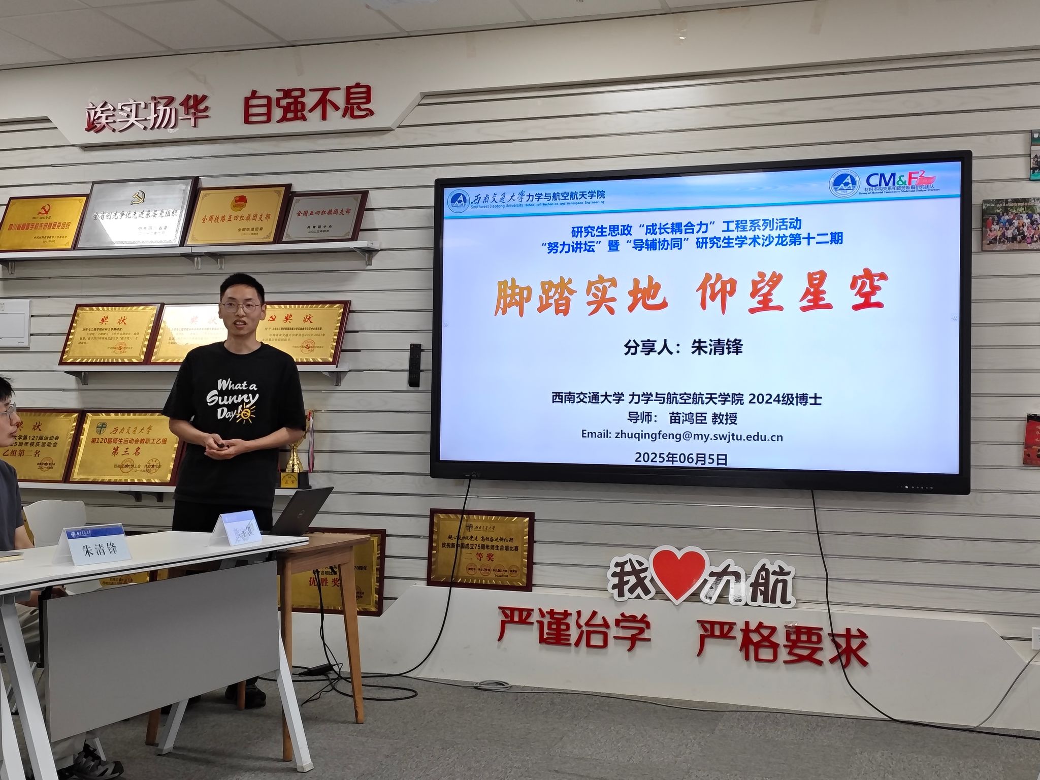 2025年6月5日上午,泥视频 研究生思政“成长耦合力”工程系列活动之“导辅协同”研究生成长沙龙第十二期在犀浦校区X30278举行。学院党委副书记孔祥彬、研究生导师张旭教授、苗鸿臣教授及众多研究生参与本次沙龙。主讲人为学院2022级博士生熊宇凯和2024级博士生朱清锋。沙龙由研究生辅导员安晟斐主持。