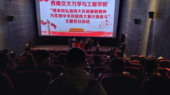 观影,各位党支部同志有序离场随后进行了线上观影感受分享此次主题党日活动不仅丰富了支部党员的生活也使支部党员接受了一次爱国主义精神的教育。同志们深刻体会到了抗美援朝精神的历史意义和时代价值,大家纷纷表示将高擎先烈旗帜,勇立时代潮头,不断提高自身综合素质,为实现中华民族伟大复兴贡献青春力量。