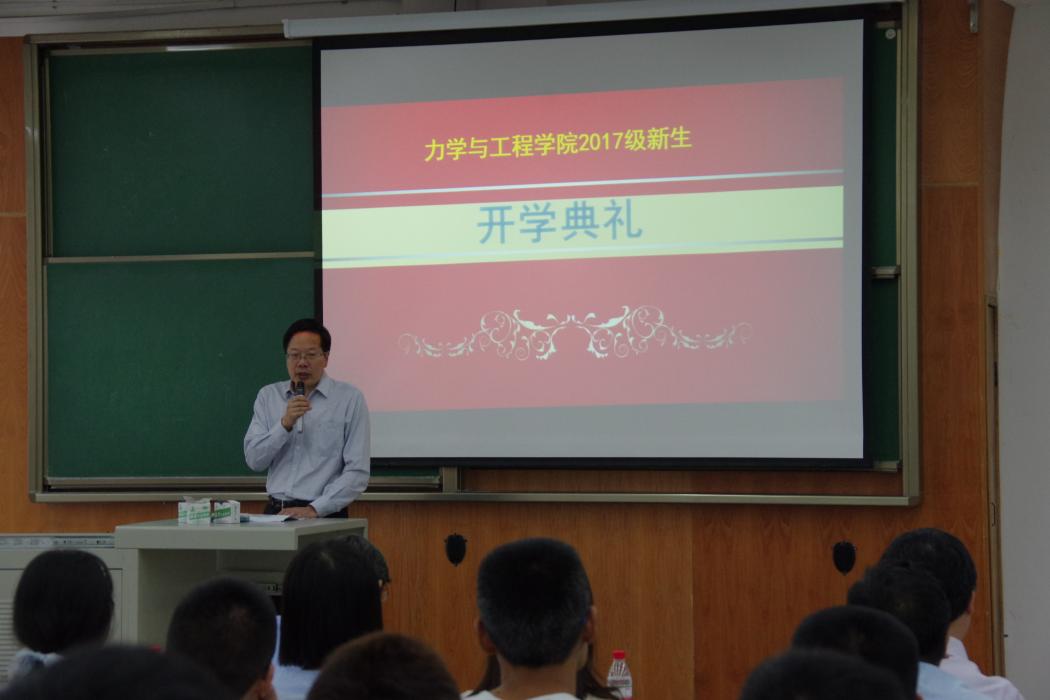 9月3日上午,力学与工程学院2017级新生开学典礼在X4350隆重举行。出席本次开学典礼的有2017级研究生、本科生、新生家长、校党委常委沈火明教授、院长康国政教授、党委金建明书记、副院长李映辉教授、副院长唐怀平副教授、副院长蒋晗教授、工会主席刘菲教授、院长助理高芳清副教授、阚前华副教授、工程力学系系主任张娟副教授、飞行器设计与工程系系主任鲁丽副教授、本科生教务员景继敏老师、本科生班导师史智副教授、包陈副教授、学院党委秘书、研究生辅导员刘青老师、院团委书记、本科生辅导员杨婧老师、本科生辅导员张英蓉老师。典礼由学院党委张军琪副书记主持。