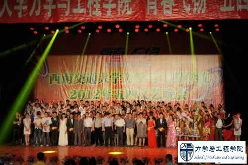 今夜繁花似海,青春的篇章璀璨如花;今夜歌声如潮,青春的歌喉雄浑嘹亮。为纪念中国共青团建立90周年和五四运动93周年,激发青年团员的爱国爱团的热情,由我校力学与工程学院主办的 “青春飞扬”五四文艺晚会于201254日晚九里校区大学生会堂隆重举行。成人教育学院刘凤群院长、曾家刚副院长、闵光辉副书记和力学与工程学院党委沈火明书记、康国政院长、李映辉副院长、高磊副书记、朱志武院长助理、戴振羽教授、葛玉梅教授以及多位老师和全体学生参加了当晚的五四文艺晚会。