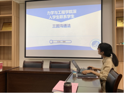 然后,力学学院杨婧老师介绍了力学学院深入学生联系学生“三因工作法”实施方案,具体介绍了力学学工组落实学校要求,通过“因事沟通”、“因时沟通”、“因势沟通”三个方面制定的系统、具体的深入学生、联系学生工作方法。