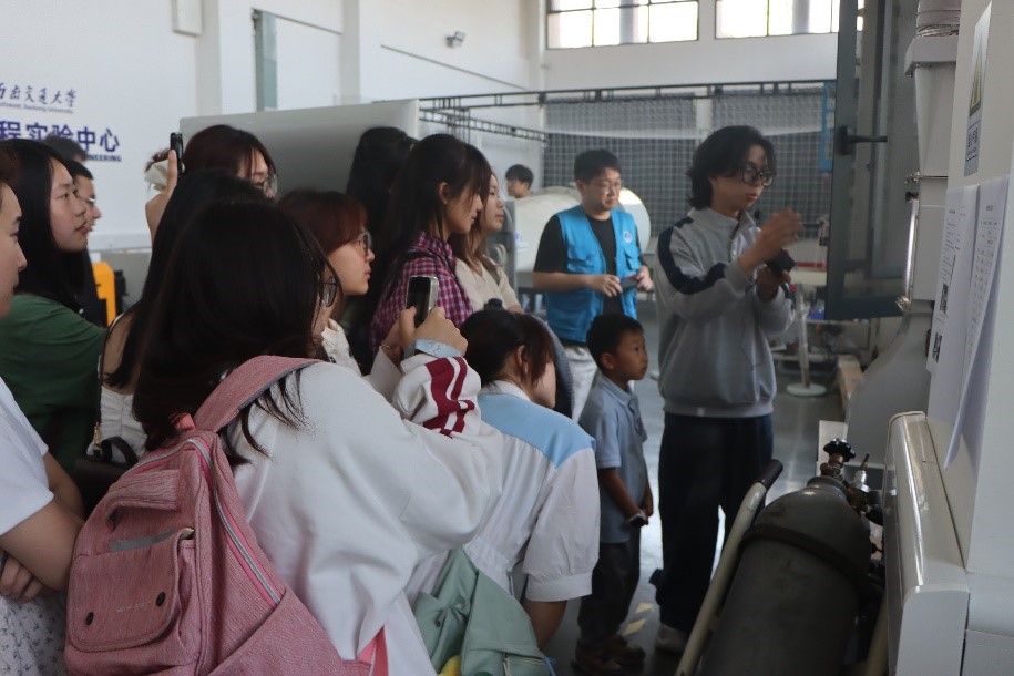 飞行器工程实验中心,学院文化大使团成员为大家讲解科研常用的实验设备,如小型风洞、飞行器模拟装置等,并在安全员的指导下进行体验驾驶飞行器,享受飞行器驾驶的体验。