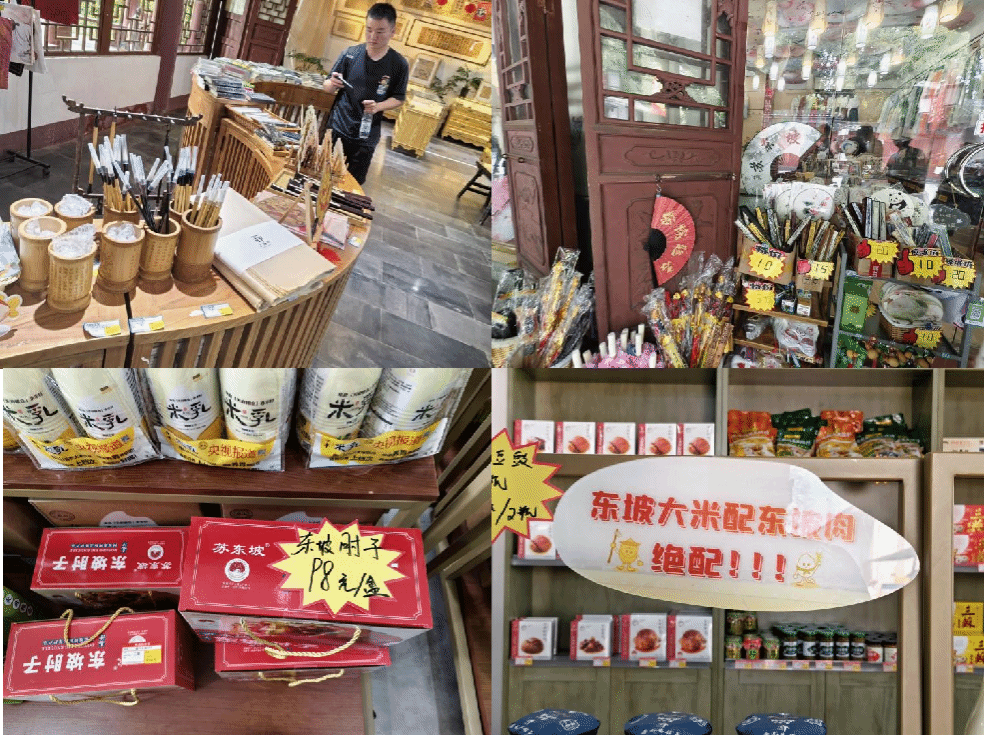 团队还走进三苏祠文创馆及周边商铺,观赏、购买以三苏祠为核心内容的相关旅游产品和文创商品。从龙眼酥、东坡肉、东坡肘子等特色美食,到印有东坡诗词、书法作品的文具、饰品等文创产品,种类繁多,深受游客喜爱。这些旅游产品和文创商品的开发,不仅丰富了游客的旅游体验,还为当地带来了可观的经济效益。