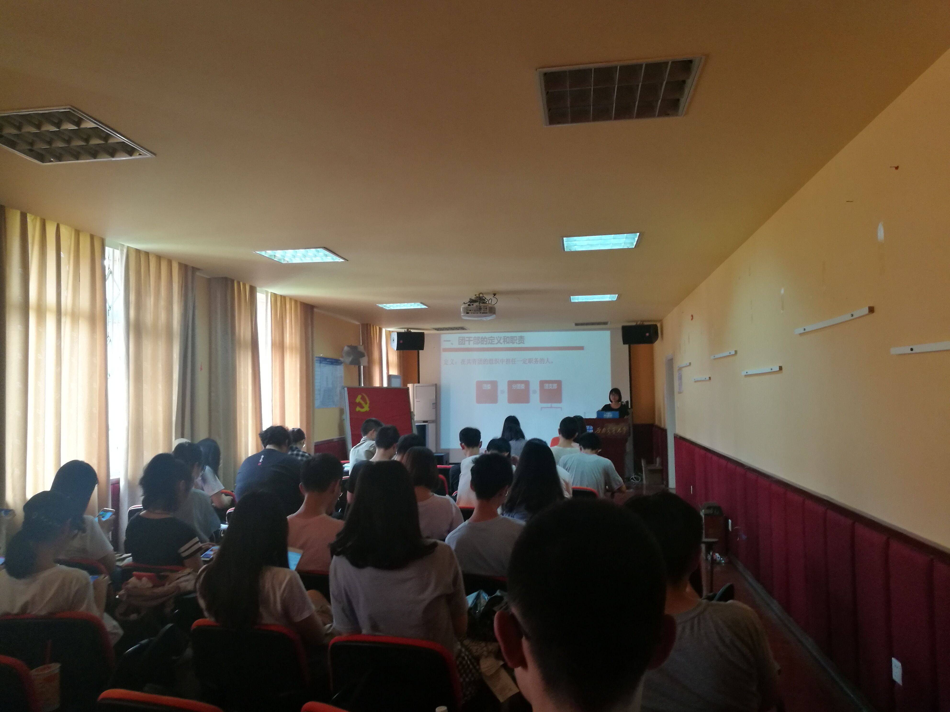 首先,杨老师介绍了本次培训的主题---提升能力水平,发挥带头作用。团支部,是共青团工作的基层组织,它同广大青年团员有着最直接、最广泛的联系,是共青团工作和活动的基本单位 ,作为团干部应努力提升自我思想素质和能力水平,切实为青年团员服务。