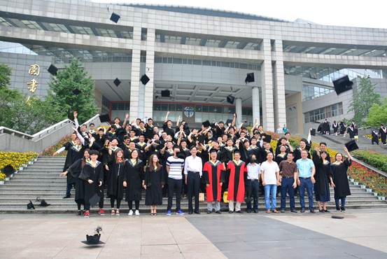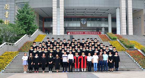 授位仪式上,康国政院长为每一位毕业生拨穗正冠,相机将记录下这象征着学子们学有所成的重要时刻。最后,全体起立奏唱校歌《文轨车书郅大同》,并在图书馆正门楼梯口合影留念。