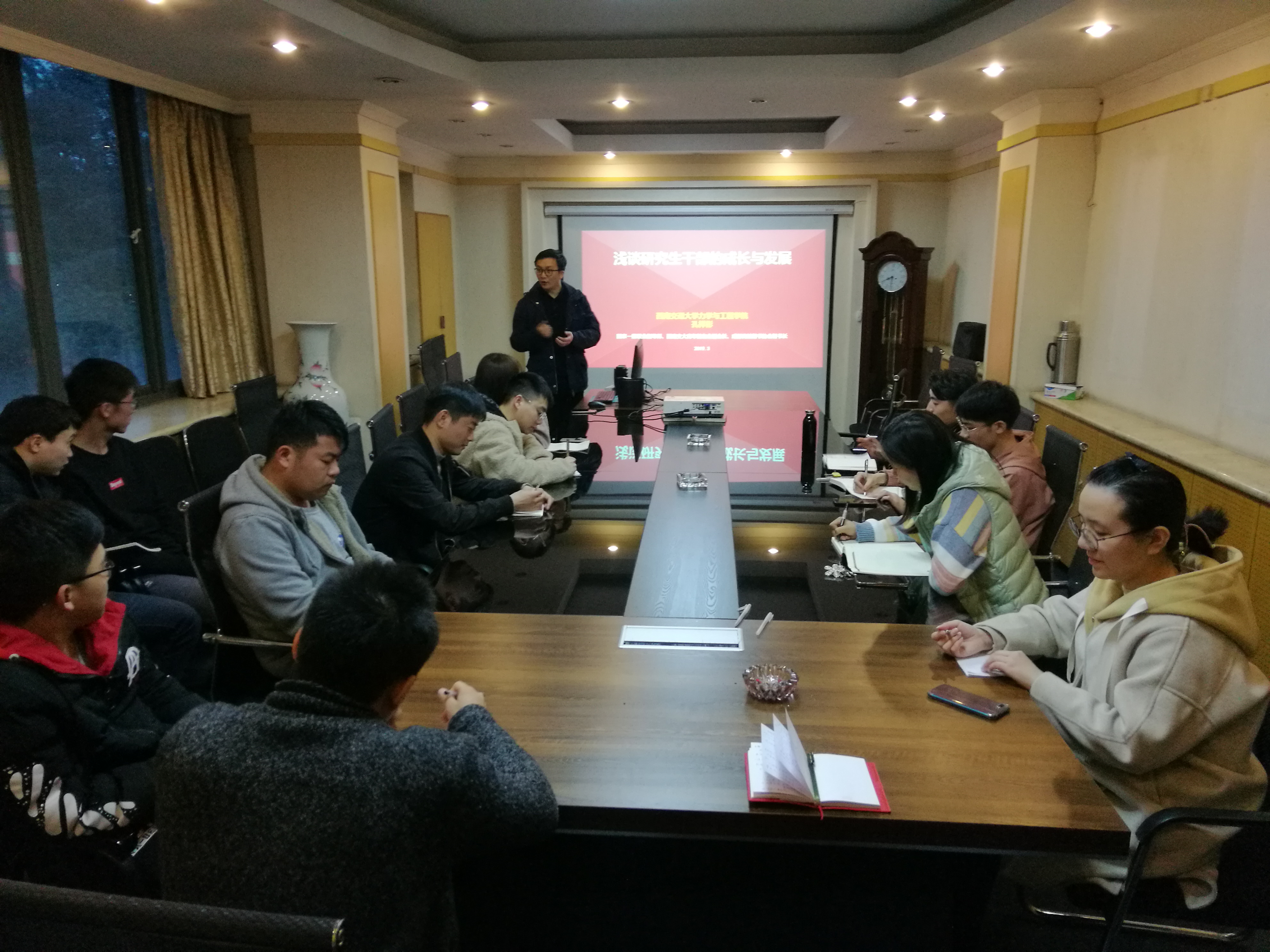 首先,孔老师以《浅谈研究生干部的成长与发展》为题,从力学学院2018年毕业生的就业情况出发,强调了研究生自身能力培养的重要性;其次指出学生干部必须提高的“能力”,即主动获取知识,分析解决问题,组织沟通协调,书面和口头表达和坚毅果敢的能力;最后通过大量交大校友的真实例子,讲解如何锻炼自身综合能力。讲座过程中,同学们认真听取老师讲解,积极思考自身差距,懂得了如何去提高自己综合实力。