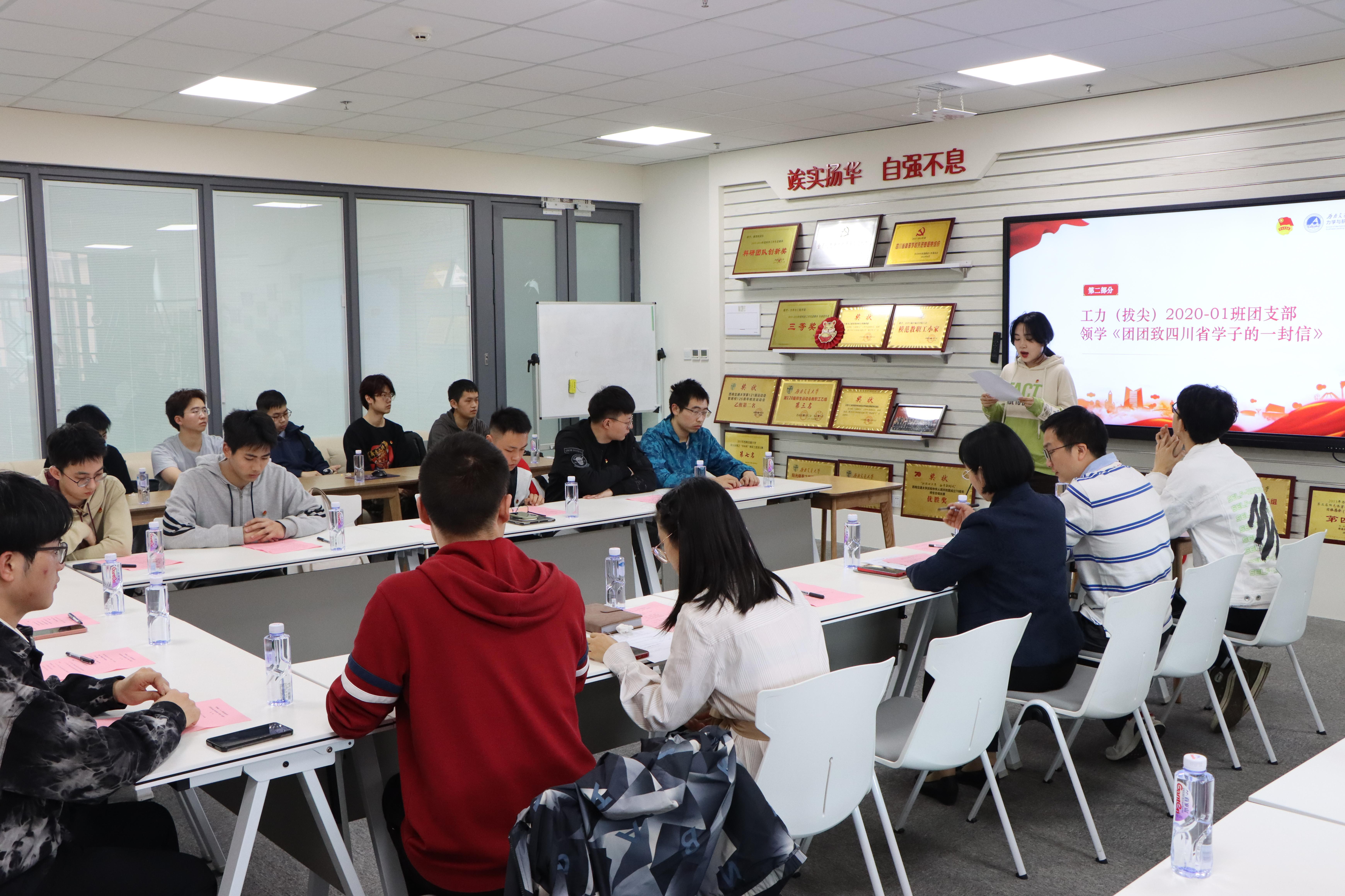 接着,工力(拔尖)2020-01班团支书李哲羽同学领读了《团团(共青团)致四川省学子的一封信》。