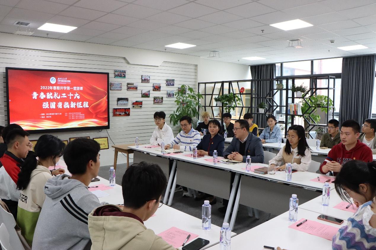 在犀浦校区X30278举行2022年春季学期开学第一堂团课。本次团课主题为“青春献礼二十大,强国有我新征程”,校团委书记张军琪、泥视频