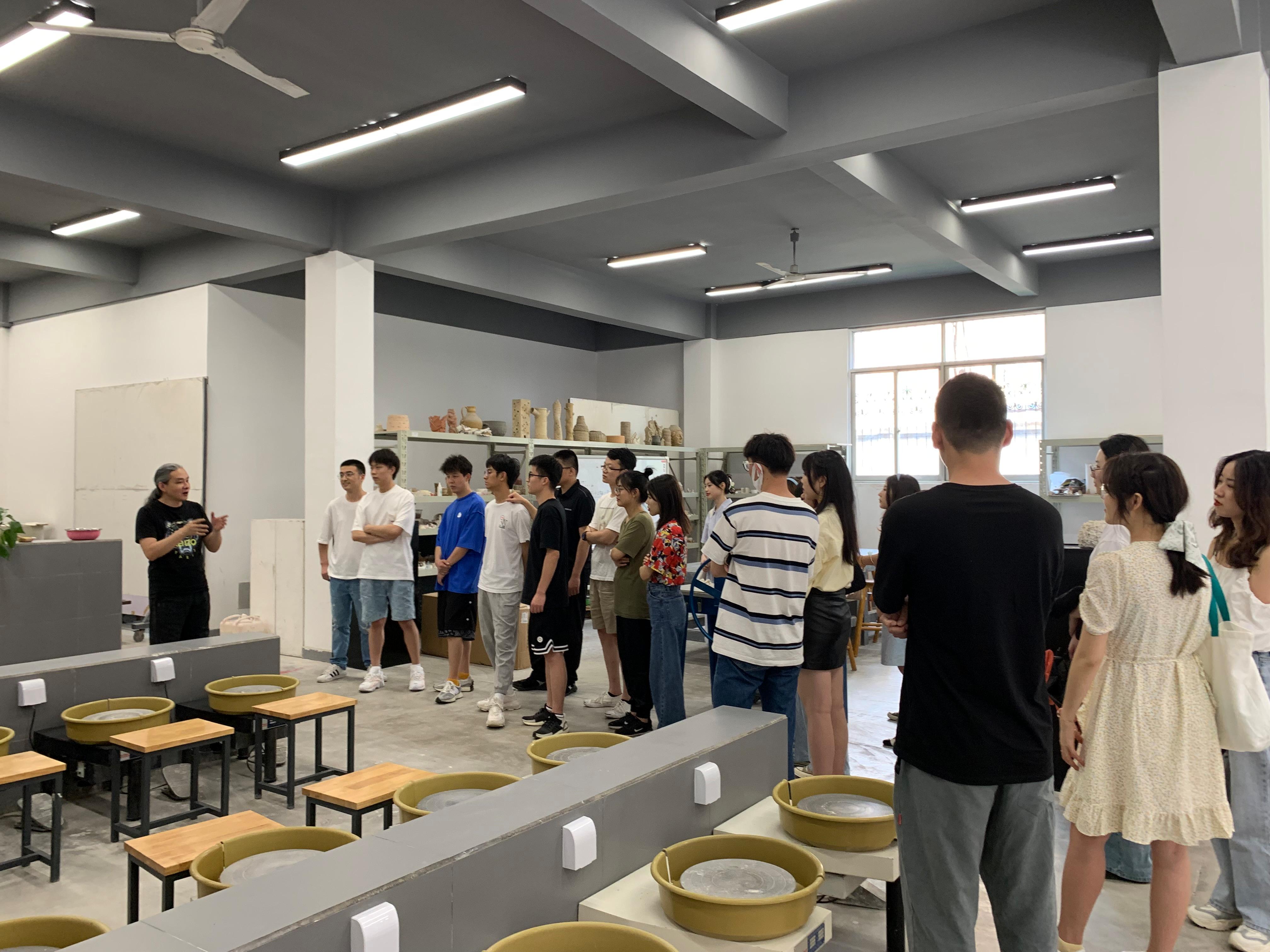 活动伊始,王老师为同学们详细地介绍了制作陶艺的相关工具及其用法并带领大家参观了场馆中的优秀作品,让同学们对中国的传统文化有了更加深入地了解。