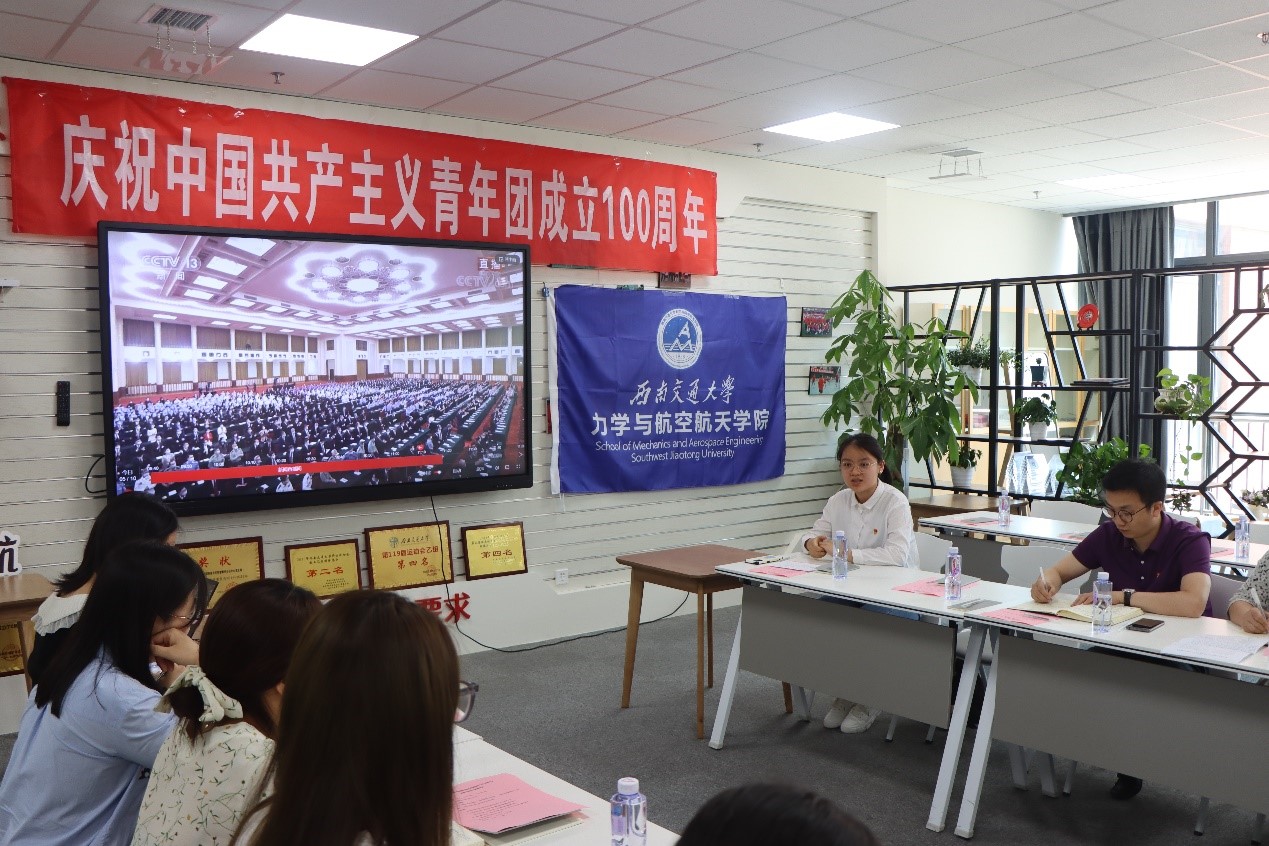 师生代表在X30278集中收看“庆祝中国共产主义青年团成立100周年大会”,在大会结束后举行了学院青年师生代表座谈会。学院党委书记栗民、党委副书记孔祥彬、学院机关党支部、团干部、五四表彰获奖个人和集体代表等一同观看直播。