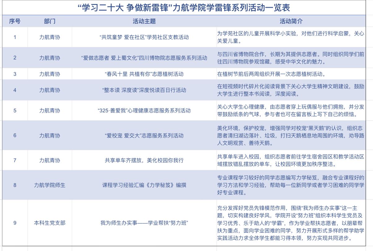 在犀浦校区三号教学楼30280会议室开展了“学习二十大,争做新雷锋”学雷锋系列活动启动仪式,学院党委副书记孔祥彬、团委书记杨婧以及40余名志愿者代表到场。会议由力航青协徐阳同学主持。
