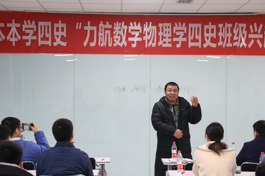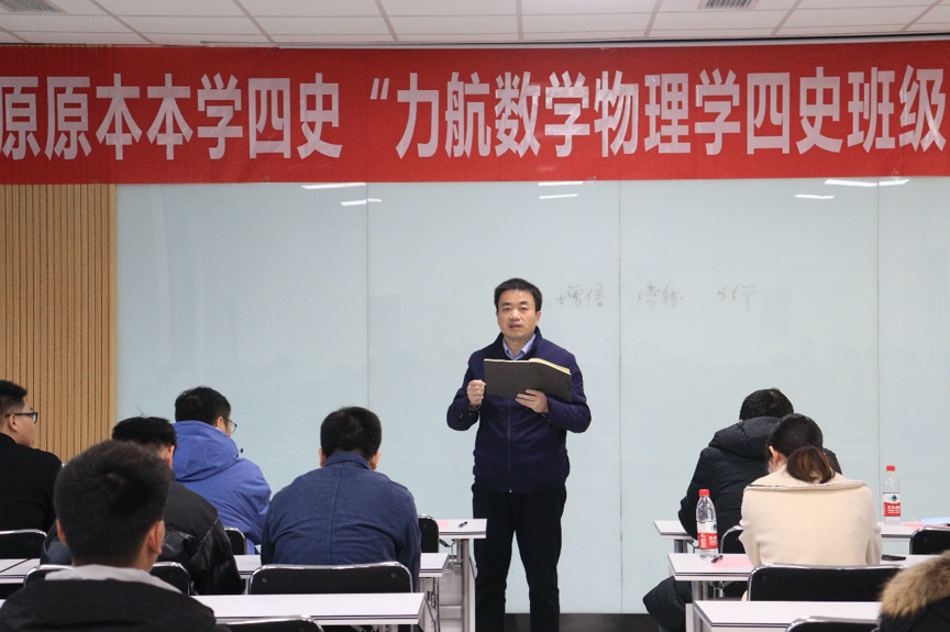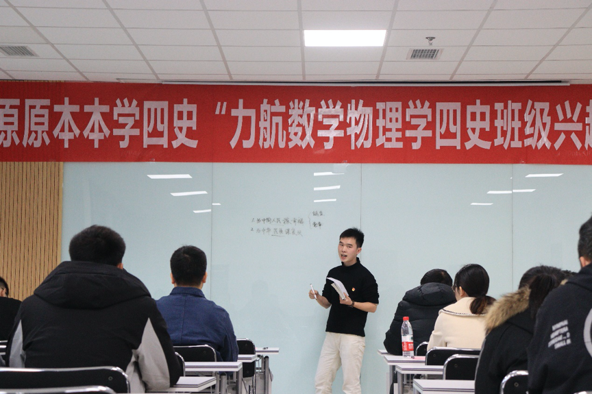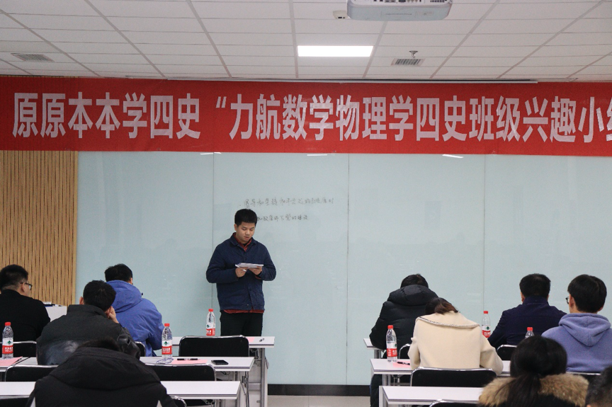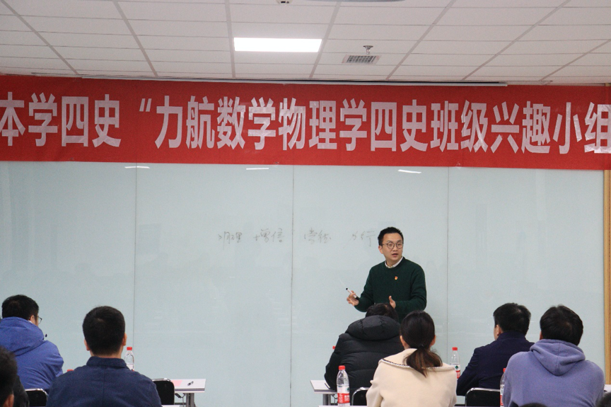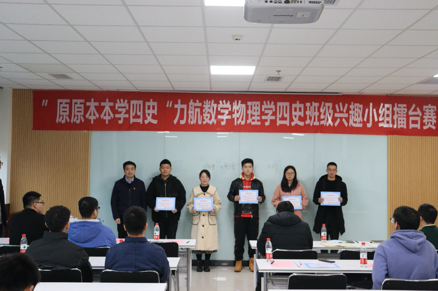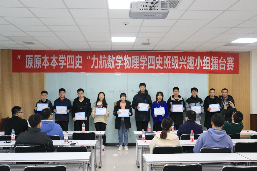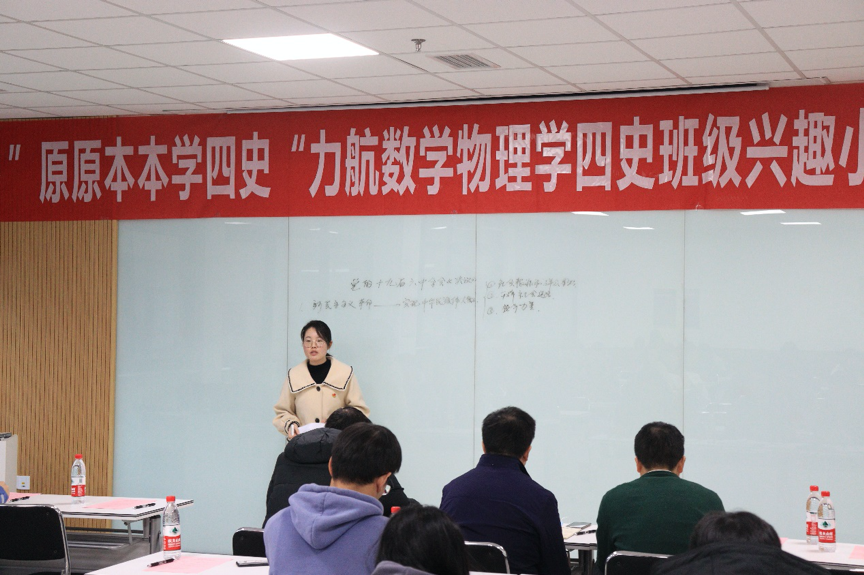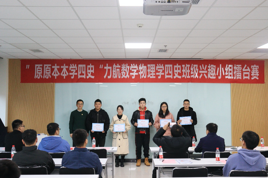 12月10日下午,由力航、数学、物理学院联合开展的“原原本本学四史”班级兴趣小组擂台赛第五场暨颁奖仪式在X30456教室举行。数学学院党委副书记黄祥、物理学院党委副书记郭剑、泥视频