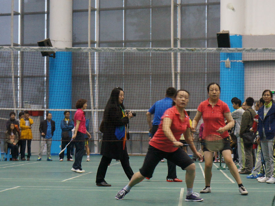 我们参赛队员的平均年龄一定是所有参赛队中最大的,平均51,5岁,最小的队员也有五十岁了。他们都是长期坚持进行羽毛球运动的老师。虽然他们的体力不如从前充沛,步伐不让你年轻时矫健,有的甚至有伤病在身,但他们的球技球感仍在,对羽毛球的热情不减,值此盛赛怎能不一展风采。我们的队伍中有长期站在教学一线的教授三人、副教授一人、实验室的工程师两人,职称也可谓是够高。遗憾的是年轻的队员还不够成熟,还需磨练和提高,暂时还不能站在赛场上。部门工会下一步的努力方向是尽快培养年轻羽毛球爱好者。