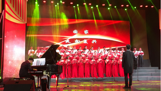 教工们身着整洁华丽的礼服,精神抖擞,热情洋溢,豪情满怀地展现了学院教工的风采。70载砥砺奋进,70载春华秋实,新中国诞生70年来,中华大地旧貌换新颜,中华民族伟大复兴的目标从来没有像今天这样清晰可见。我爱我的国,我爱我的家,力学学院全体教师用一首《国家》表白祖国,用一首《走向复兴》祝福新时代。现场气氛热烈,高潮迭起,热烈的掌声此起彼伏。