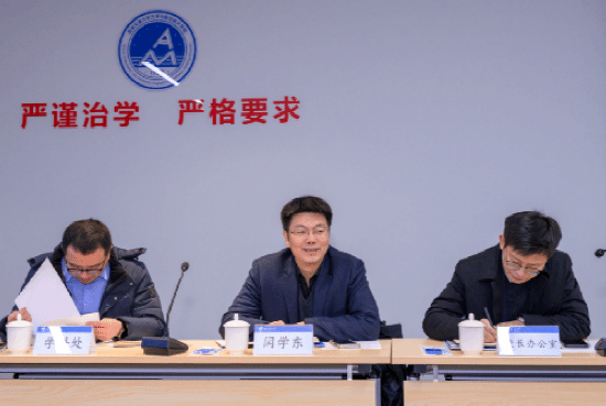 李翔宇院长代表学院对闫学东校长一行到学院交流指导工作表示欢迎,并围绕学院办学历程情况、人才培养、学科建设和发展思路四个方面进行了工作汇报。