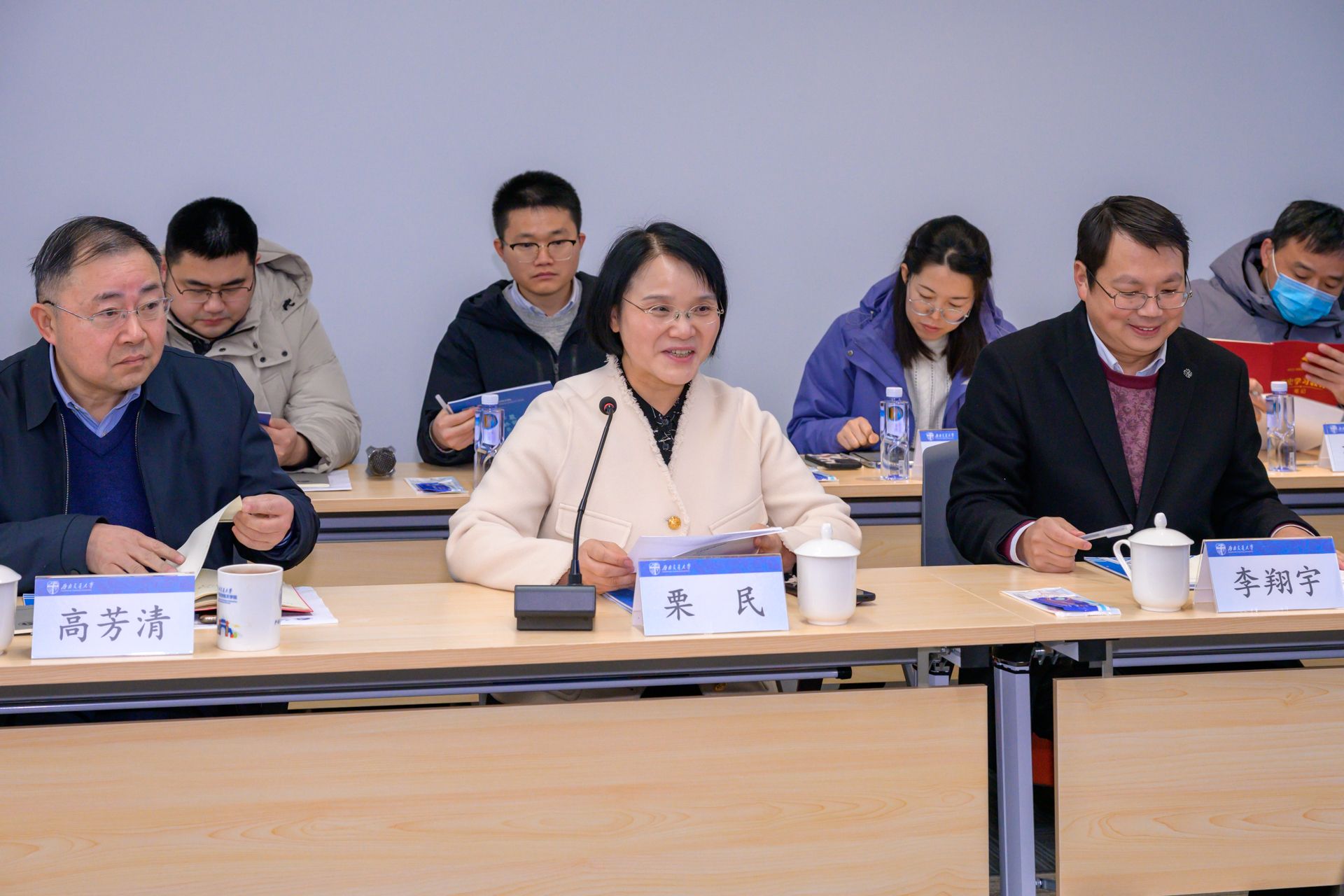 校长办公室主任、信息化与网络管理处处长张铎,发展规划与学科建设处处长胡海涛,国际合作与交流处处长马磊,教务处副处长刘朝晖,研究生院副院长艾长发,科学技术发展研究院副院长李怀龙,人事处副处长张涵,国有资产与实验室管理处副处长卫飞飞,学院党政领导、学科带头人、人才代表、系主任、学生代表等同志共同参加本次交流座谈会。