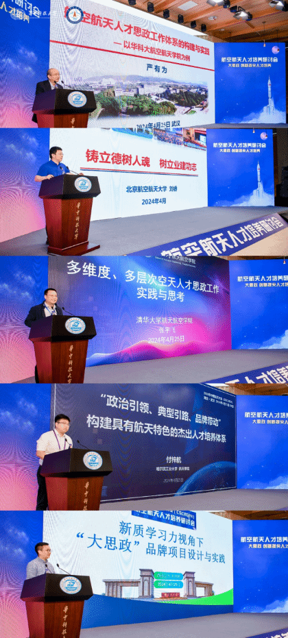 在大会主旨报告环节,华中科技大学航空航天学院党委书记严有为作了题为“航空航天人才思政体系的构建与实践”的报告,北京航空航天大学宇航学院党委书记刘睿作了题为“铸立德树人魂,树立业建功志”的报告,清华大学航天航空学院党委副书记张宇飞作了题为“多维度、多层次空天人才思政工作实践与思考”的报告,哈尔滨工业大学航天学院党委副书记付梓航作了题为“‘政治引领、典型引路、品牌带动’ 构建具有航天特色的杰出人才培养体系”的报告,泥视频