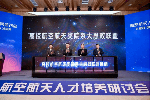 高校航空航天类院系大思政联盟是在中国宇航学会和教育部高校航空航天类专业教学指导委员会指导下,由26所高校航空航天类院系联合发起,面向全国高校航空航天类院系开展相关活动。联盟秉承合作、共享、开放、创新的原则,聚焦立德树人根本任务,探索新时代高校航空航天类教育的“大思政”建设的新理念、新体系、新模式,以推进跨院校课程建设、合作社会大课堂活动、共建大资源平台、共享大师资体系等为主要内容,实现联盟成员单位资源共享、优势互补、共同进步,形成更多成果、更大辐射,携手助力培养新时代具备坚定的理想信念、崇高的爱国情怀和系统扎实的专业知识的航空航天类高素质拔尖创新人才。