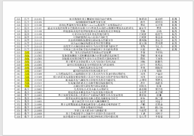 部分新立项国家大学生创新训练计划(SRTP)名单