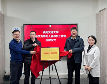 “为学为事为人”辅导员工作室揭牌并合影留念。