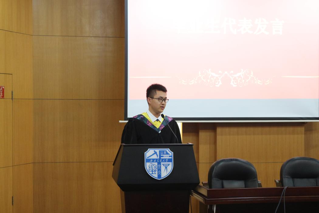 典礼在庄严的国歌声中拉开帷幕。首先,院长康国政教授代表学院致辞,他希望毕业生牢记“竢实扬华,自强不息”的交大精神,承袭“双严的优良传统,在学习和工作岗位上继续取得佳绩,常回母校、母院看看。接着,党委金建明书记宣读了获得学士学位的同学名单,他希望毕业生再接再厉、取得更多成绩。紧接着,参加典礼的各位老师分别为优秀毕业生颁发了荣誉证书,为毕业生颁发了毕业证书、学位证书、毕业纪品。毕业生代表丁立同学代表全体毕业生发言,感谢学校、学院老师的培养教育,希望学校、学院发展得更好。