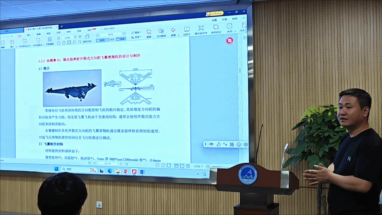 举办了赛题讲解与相关知识讲座,邀请力学专业老师对各赛题进行了深入剖析,为参赛选手答疑解惑,同时发放了相关材料,助力选手们完善实验方案。此后的时间里,参赛队伍利用学校实验室资源,投入到紧张的实验设计与制作中。无论是 “橡皮筋弹射开裂式方向舵飞翼滑翔机”的精巧构思,还是自命题赛中各类极具创意的力学应用研究,都凝聚着选手们的智慧与汗水。