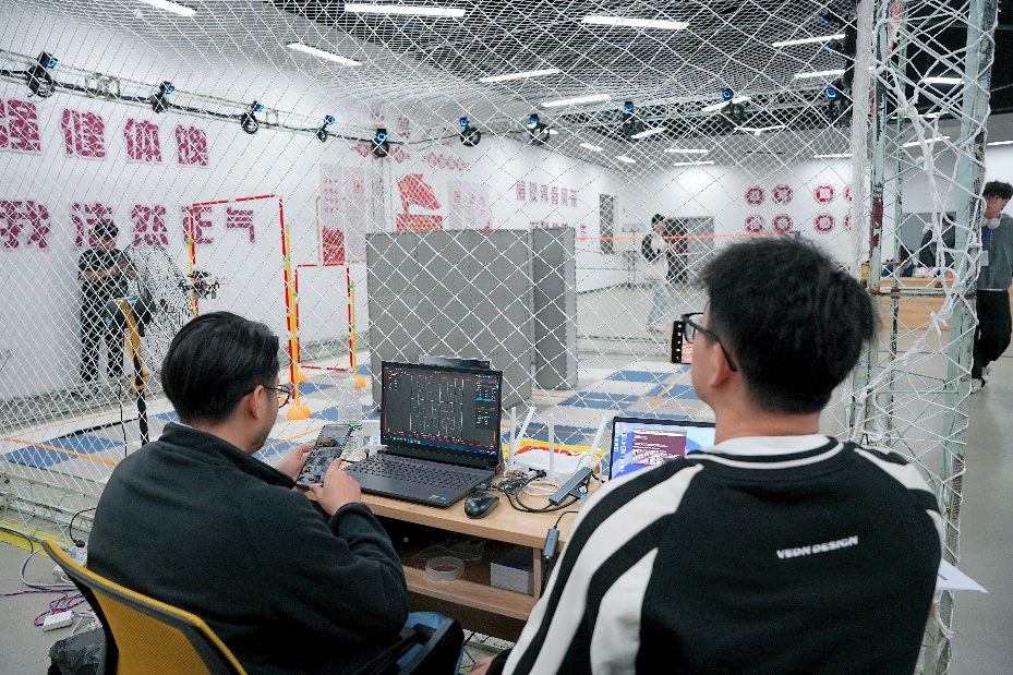 参赛成员根据赛事分组,兵分两路参与不同赛道的角逐。在实践赛道中,队员开发的无人机基于室内高精度动作捕捉系统,实现自主快速的障碍穿越与货物投递,比赛过程既充满科技含量,又具有浓厚的趣味性。在彭州赛区多旋翼航模赛道中,队员们操控无人机按规定路线穿越障碍,在固定翼赛道中以精准的起降控制和高效的赛道完成率。最终,泥视频