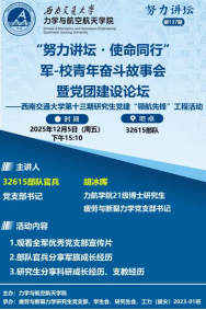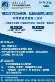 组织师生党员走进32615部队营区,开展“进军营学红色传统,话使命践努力担当”军地联合主题党日活动。本次活动也是疲劳与断裂力学党支部建设第十三期研究生党建“领航先锋”工程的生动实践。32615部队官兵代表,学院党委书记栗民、校团委副书记郑源、学院党委副书记孔祥彬,及师生党员代表共30余人参与活动。