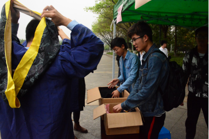 为确保整个拍摄活动的顺利进行,前期,学院学工组制定了详细的工作方案。18日19日的上午7点,力学学院九里校区、犀浦校区的工作人员与志愿者同学们一起,开始搭建场地、准备学位服等物品,上午八点,拍摄活动正式开始。工作人员热情为每一位同学发放学位服,并细心帮助他们整理好帽子、流苏,按照顺序依次上前拍照,他们脸上的表情或灿烂、或严肃、或拘谨,快门按下的那一刻都被连同阳光一起定格在这“菁华岁月”。