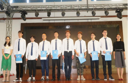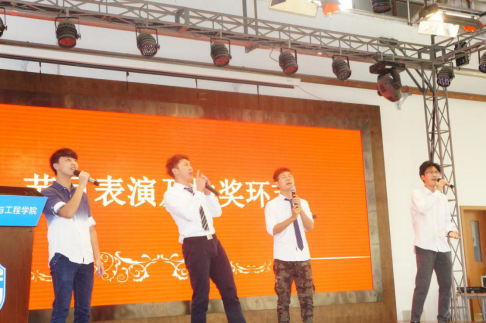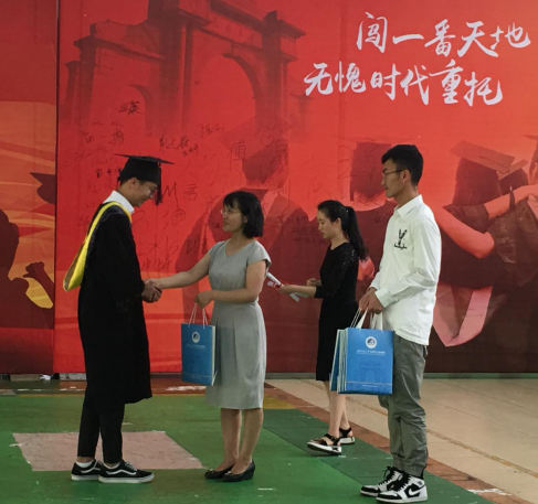 典礼上,毕业生殷喆和周莹朴通过相声表演回顾了大学四年的生活与美好的回忆,还与2018级学生代表朱韵融和杨静雷同学通过歌曲《不说再见》祝2019届全体同学毕业快乐,老师们则通过抽奖为毕业生送上毕业幸运与祝福。