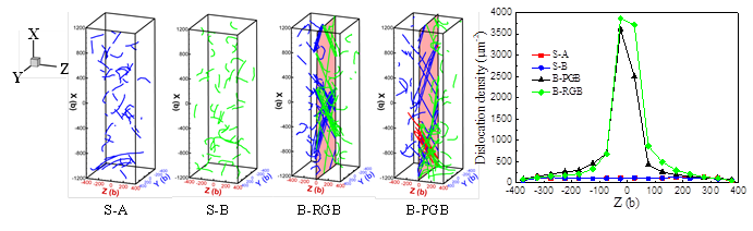 材料的微结构对材料的力学行为有重要的影响。晶界作为金属材料内部的重要面缺陷,其与线缺陷位错的交互作用在很大程度上决定了材料的塑性、疲劳与断裂行为。离散位错动力学模拟作为原子尺度的分子动力学模拟和宏观尺度的有限元模拟的桥梁,是研究微尺度下力学行为与变形机理的重要手段。在三维位错动力学框架中建立基于物理机制的且适用于各种晶界类型的晶界模型,有重要的科学意义,是一个重要的研究挑战,但相关研究还鲜见报道。
