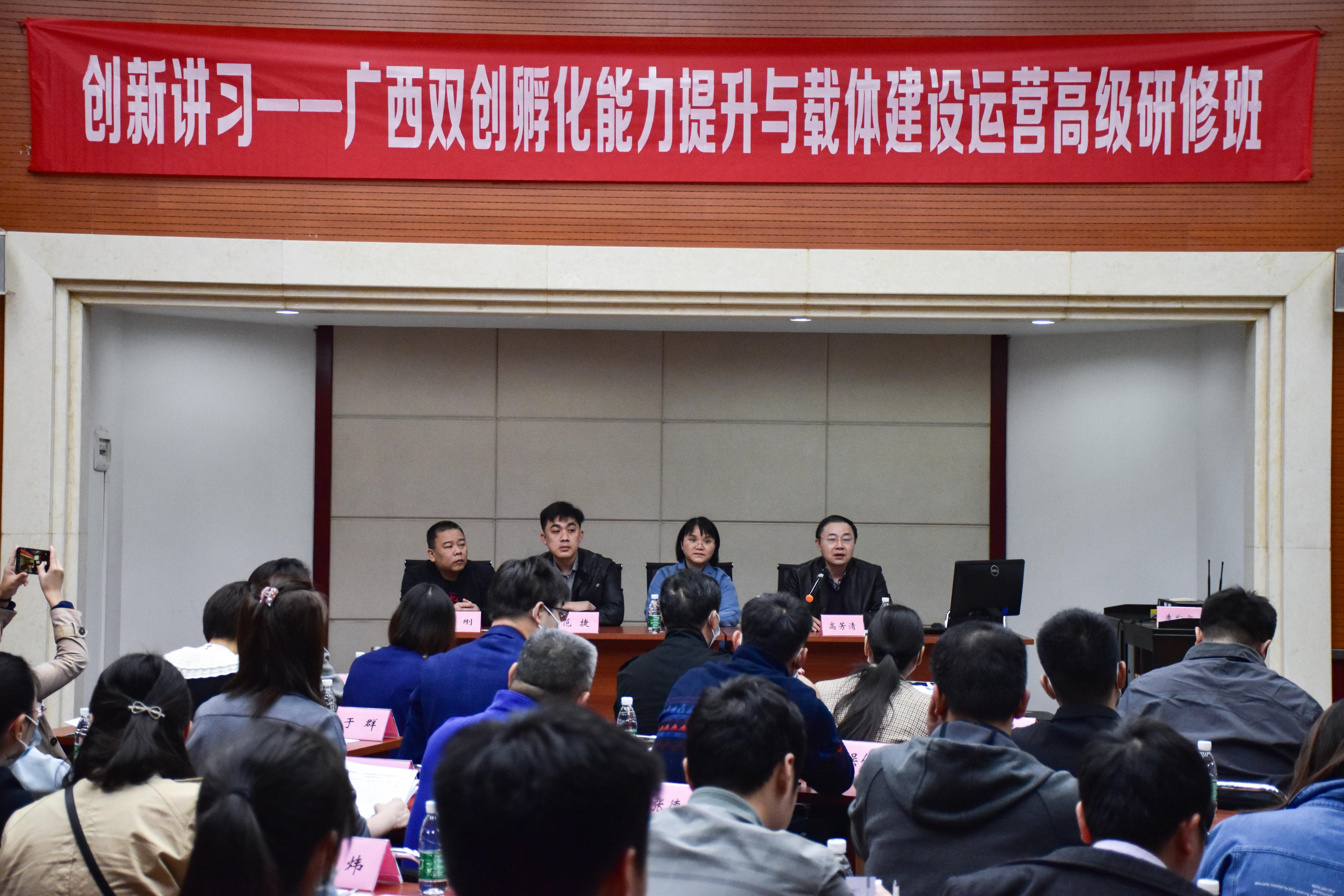 九里校区举办了“创新讲习——广西双创孵化能力提升与载体建设运营高级研修班”,培训参加的单位和人员主要是广西壮族自治区政府科技部门、国有企业、民营企业、高等院校等有关企业孵化器公司、科技公司、大学孵化基地、大学管理人员、大学科技园、产业园区管委会、高新技术服务中心、创业服务中心、科技园、投资公司等单位的董事长、总经理、经理、运营部长、业务主管、财务主管、学院院长等人员。