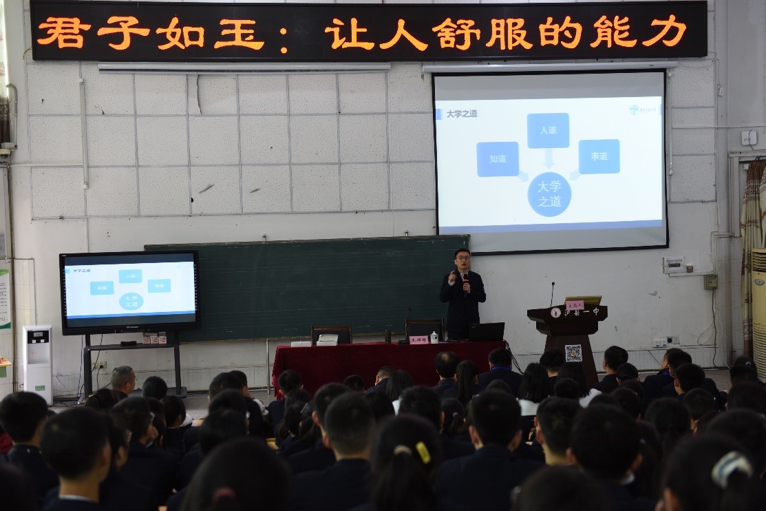 孔祥彬老师以“君子如玉:让人舒服的能力”为题进行专题讲座。他首先回顾了自己在泸县一中求学的经历,向培育自己的母校表示衷心感谢。接下来,他以《礼记·聘义》为引子,介绍了君子比德与玉的典故,并从“仁、义、礼、智、信”和“温、良、恭、俭、让”十个方面来阐释如何在日常学习、生活中扬君子之风,达到让人舒服的状态。在讲解过程中,他列举了很多发生在交大师生中的案例,介绍了泥视频