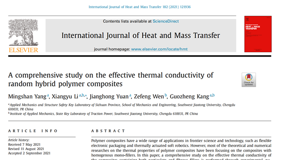 近日,李翔宇教授团队在随机复杂介质的研究方向上取得了重要进展,相关研究成果以“A comprehensive study on the effective thermal conductivity of random hybrid polymer composites”为题发表在了传热学的顶级期刊《International Journal of Heat and Mass Transfer》(中科院一区TOP,IF:5.584)。
