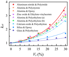 所提出的数值方法能够有效地表征聚合物复合材料的微结构,数值模拟与实验数据吻合良好。通过系统地数值模拟发展了一个预测等效热导率的唯像模型,模型预测结果与本文的实验结果和已有文献中的实验结果吻合良好(见图2)。