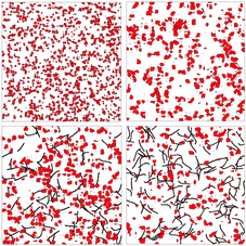 本文针对多碳纳米管(MWCNT)和氮化铝(AlN)陶瓷粉末混合填充PDMS的聚合物复合材料,从实验研究、数值模拟和理论分析三个方面展开了综合性的研究。首先,根据制备的实验样品,采用电子扫描显微镜表征了聚合物复合材料的微结构特征;然后,基于微结构的统计信息,重建出了聚合物复合材料微结构的随机数字模型(见图1)。利用格子Boltzmann方法计算了随机模型的等效热导率,并探讨了填料热导率、尺寸、体积分数和微结构分布等因素对复合材料等效热导率的影响。