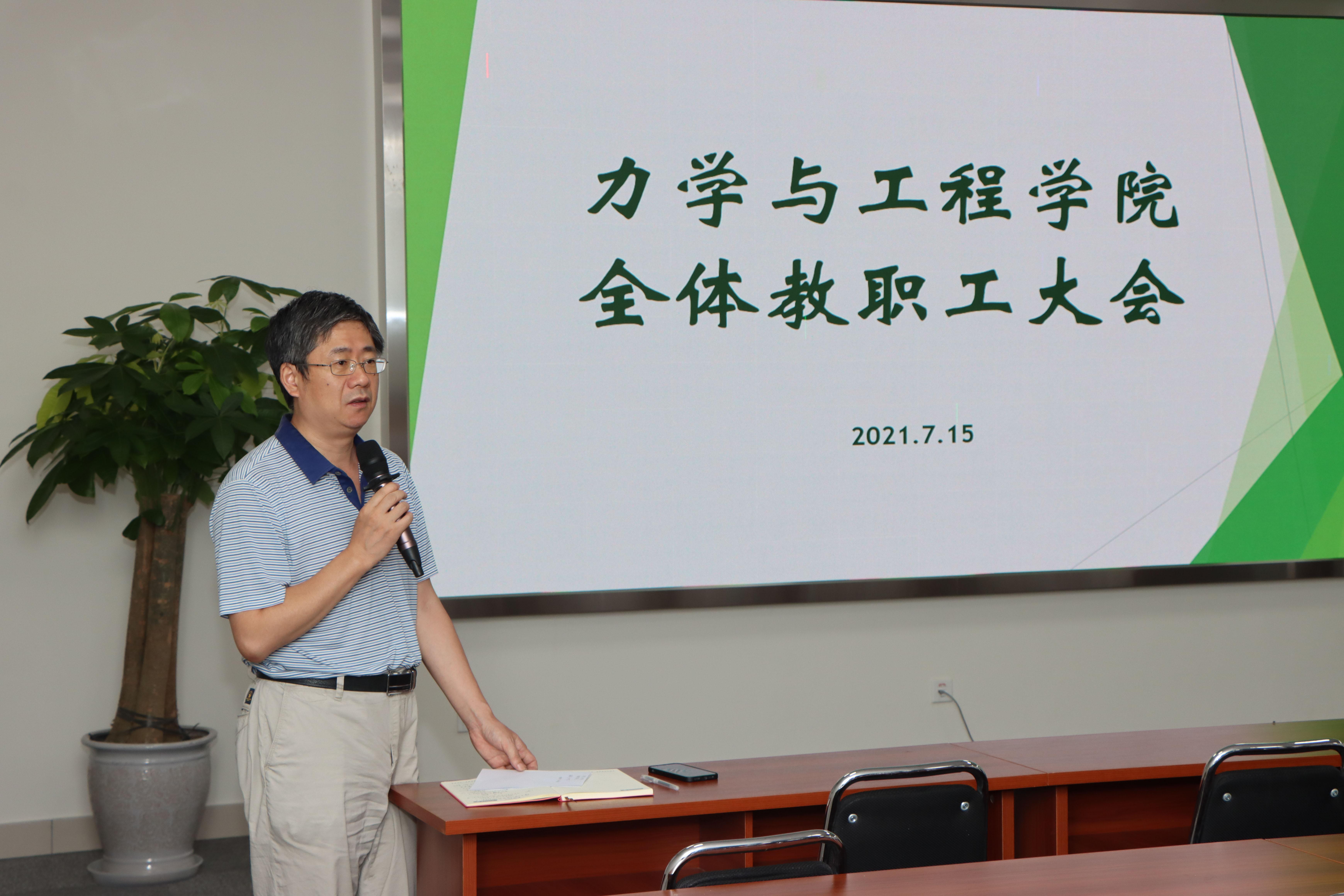 为了全面总结本学期学院工作和部署假期工作,更好地开展新学期教学科研工作,2021年7月15日下午,力学与工程学院召开了全体教职工期末工作会议。会议由学院康国政院长主持。