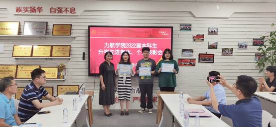 接着,学院领导为获奖集体和个人颁发了奖状。工力2018-03班、飞行2018-01班、工力2018-01班荣获“升学先进班级”奖,T041030、T041033、T041025等13个宿舍荣获“升学先进宿舍”奖、喻勇老师、刘宇杰老师、李鹏老师荣获“优秀班导师”奖。