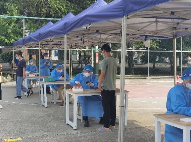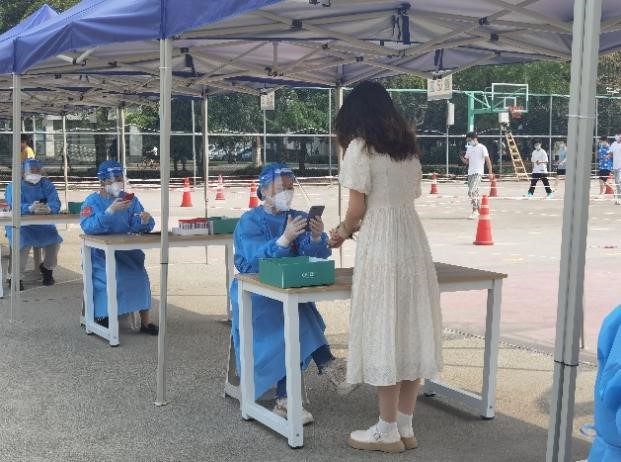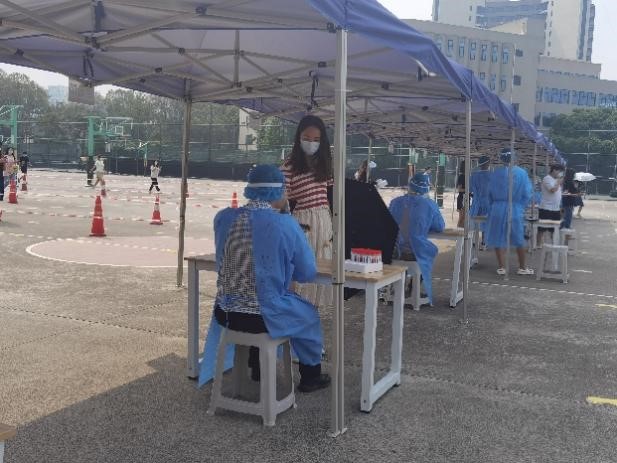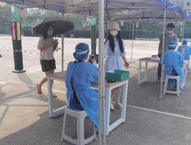上午8点整九里校区的全员核酸检测工作准时开始,五位教师党员分别负责五条通道的核酸检测信息录入工作,学生们开始有序进场。历时五个小时整,在学校的统一部署下,在所有同学的高效配合下,在志愿者的辛苦付出下,九里校区的核酸检测圆满结束。