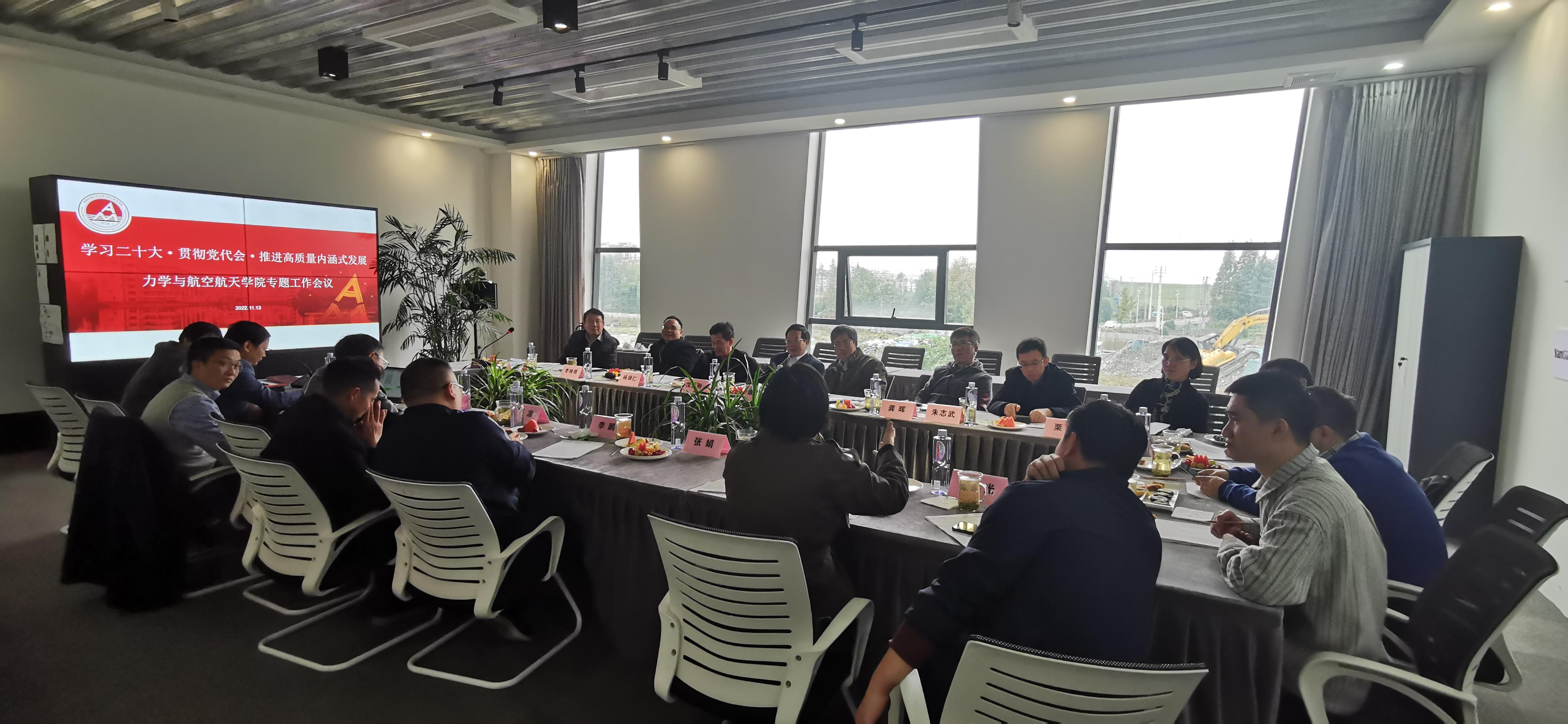 会议伊始,执行院长李翔宇介绍了学院近年发展情况,并指出了学院高质量内涵式发展面临的机遇和挑战。在接下来的汇报和研讨环节,高芳清副院长、阚前华副院长、孔祥彬副书记、工程力学系张娟主任、基础力学系鲁丽主任、航空航天系李鹏主任,分别就实验室建设与管理、教育教学、人才培养、学生工作、学科建设、课程建设等进行专题汇报。全体参会人员就航宇学科博士点建设及人才培养中的重点难点问题进行了专题研讨,在厘清现状的基础上剖析面临的问题,并展开了热烈讨论。