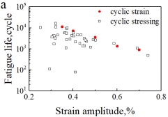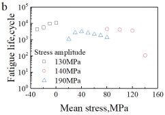 图4(a)应变和应力控制循环下应变幅值与疲劳寿命之间的关系;(b)平均应力与疲劳寿命之间的关系