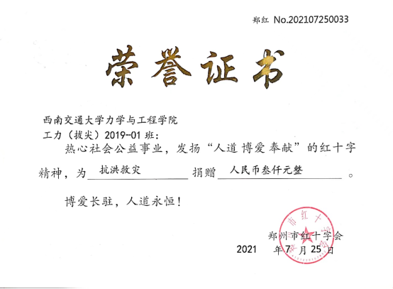 图13为河南水灾捐款证书