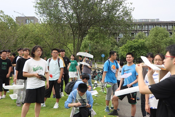 本届“力学创新实验大赛”设置了5个赛题,分别为:1)赛题I—“力学之美”模型设计与制作,2)赛题II—皮筋动力滑翔机模型的设计与制作,3)赛题III—水火箭模型的设计与制作,4)赛题IV-第十四届全国周培源大学生力学竞赛“基础力学实验”团体赛参赛队选拔赛和5)赛题V-自命题赛“力学应用和研究中的科技创新与创造”飞行器设计专项。来自全校各学院近260名学生、协同组队66个小组参加了本届赛事。通过前期初赛评比,最终62个参赛队进入决赛。