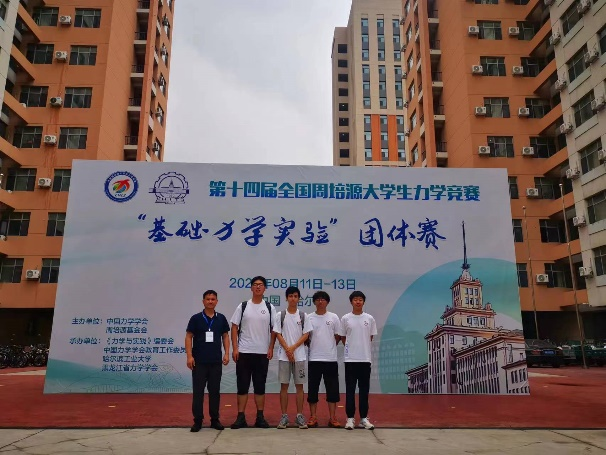 赛题IV为第十四届全国周培源大学生力学竞赛“基础力学实验”团体赛参赛队选拔赛,历时一个多月的培训与指导,比赛于6月29日举行。经过笔试和实操评比,最终评出一等奖1项、二等奖1项、三等奖2项。随后,对获奖的4名同学进行了为期1个月的集训,于8月11日-14日代表学校参加全国团体赛,获优胜奖。