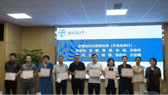 在犀浦校区3号教学楼30224会议室召开全体教职工大会,会议上表彰了学院青年教师讲课比赛获奖者,颁发学校疫情防控志愿服务证书和学院2021-2023年度优秀共产党员、优秀党务工作者荣誉证书,学院各领导对分管领域本学期重点工作进行了布置。