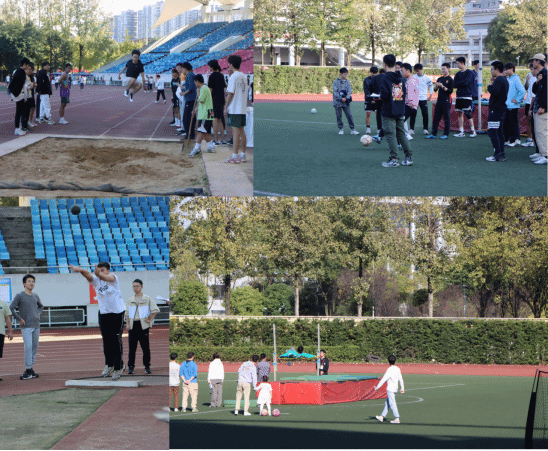 随后,运动会正式开始。陆续开展了男子100米、男子1500米、男子实心球、跳高、铅球、跳远、女子100米、实心球、铅球等单人项目,以及男女混合4*100米、足球射门、两人三足、拔河等集体项目。
