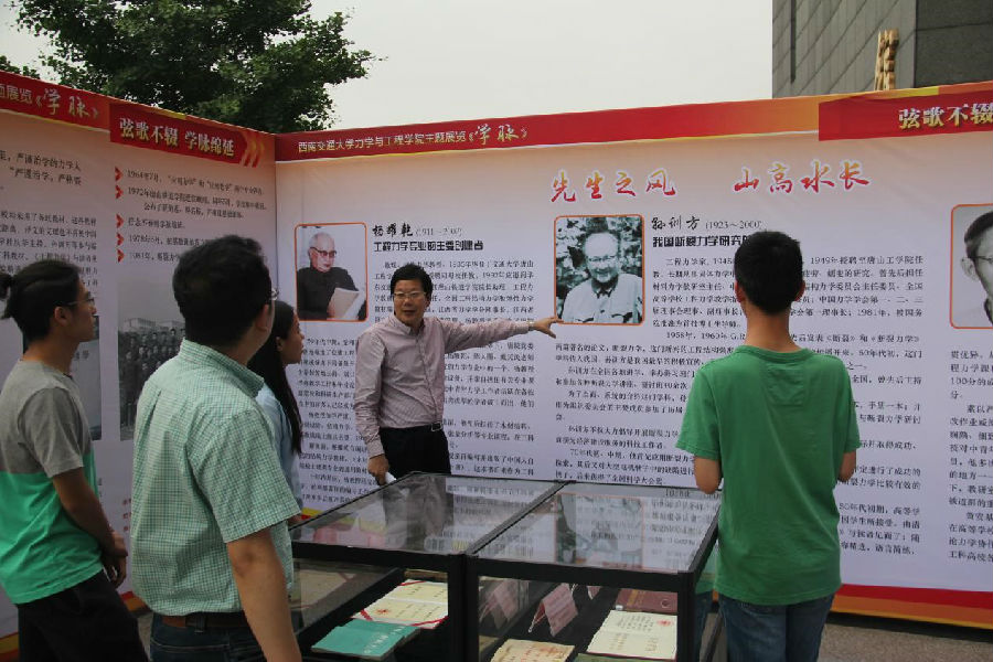 整个展览活动吸引了从校党委常委沈火明教授、院党委金建明书记,到力学学院学工组组长张军琪老师,再到力学的研究生、本科生等广大师生的目光。让交大师生们从展览中清晰地感受了力学学脉的传承过程,体会力学的风雕雨刻和薪火相传。