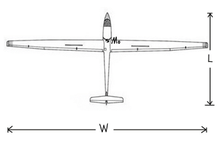 图5滑翔机示意图(W:翼展,L:机长,M0:重心)