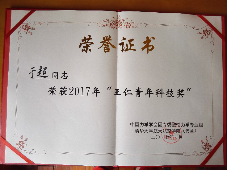 于超副教授获此殊荣,由黄克智院士亲自颁奖。